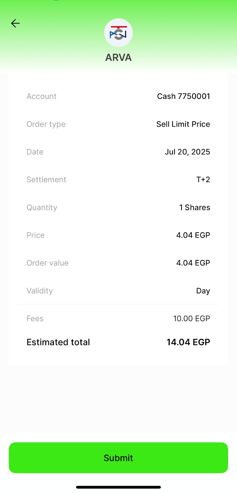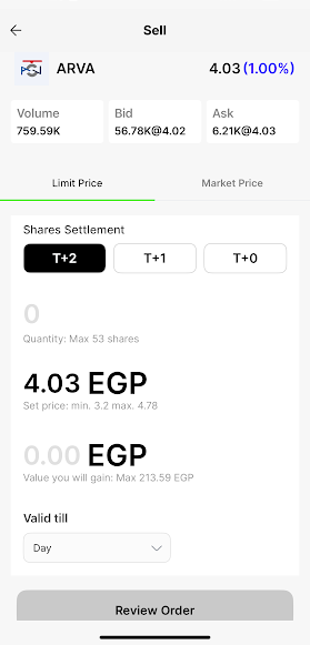Example: if a stock is currently trading at 48egp and you place a limit order at 50egp, your order will only go through if the stock price gains to 50egp.